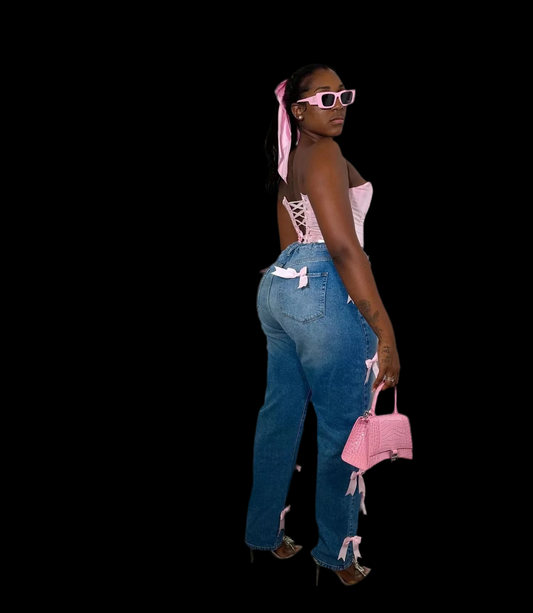 Pink Bow High Waist Pants