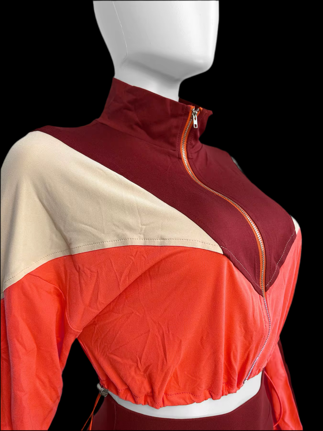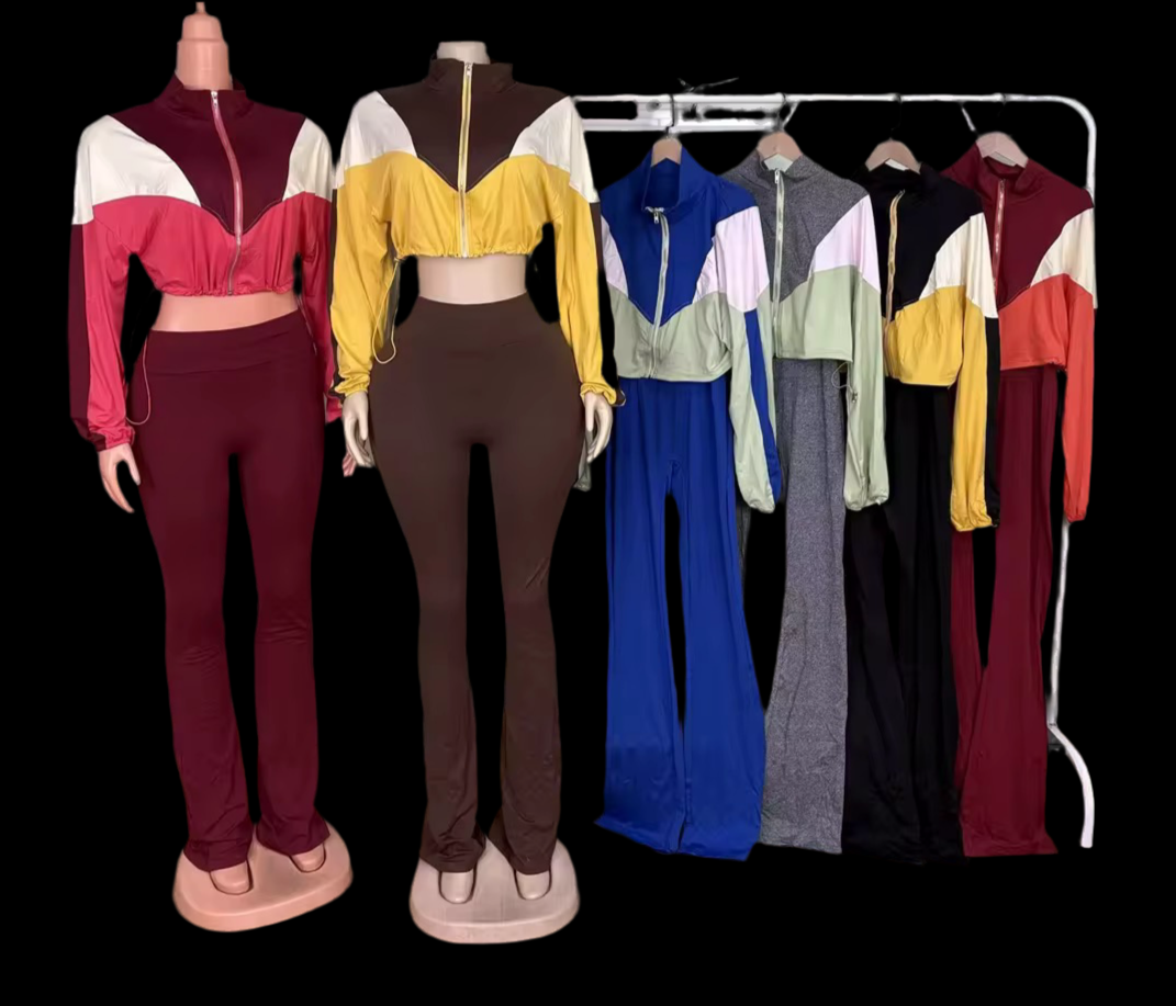 Two Piece Zipper Crop Top Flare Pants Outfit